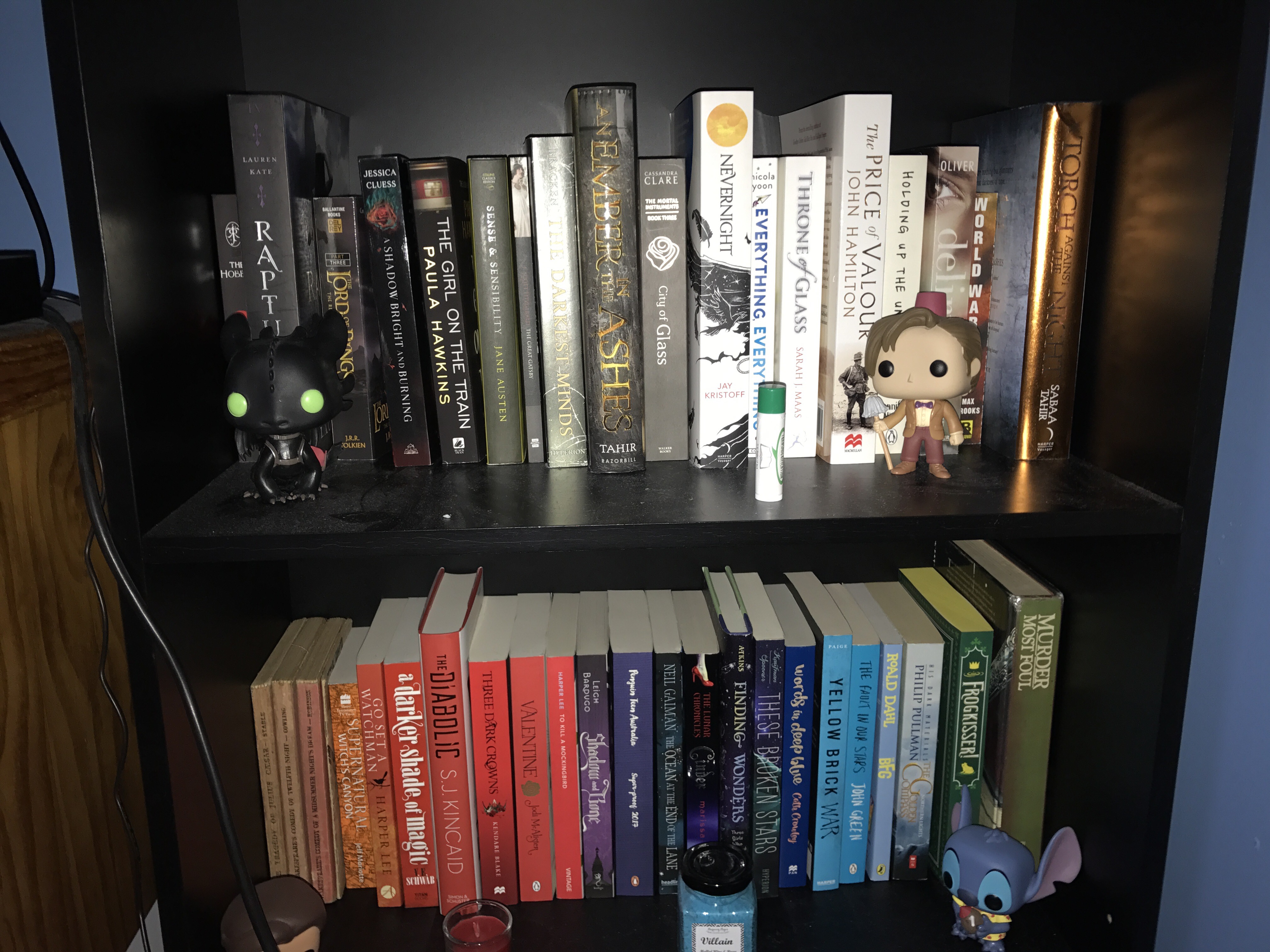Also the book next to An Ember in the Ashes is The Darkest Minds! I couldn’t get my flash not to shine in either it or An Ember in the Ashes so I gave up. π