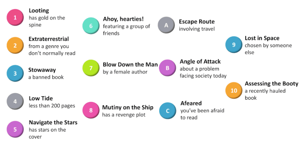 - 9 & 10 lead to X marks the spot! Your reward is completing the readathon (sorry mate, wish I had gold to hand out!)