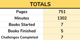 Firstly here is some stats! I’m using Caz’s ReadAThon Tracker which I love and it keeps you up to date with your current reading stats! You may notice it says I have completed 7 challenges, that’s not actually correct. As I have combined BtB & NEWTs on one spreadsheet and the spreadsheet doesn’t calculate 1 book counting for multiple challenges this is only showing up with 7 completed, but I’ve actually completed 9 challenges between the 2 ReadAThons.