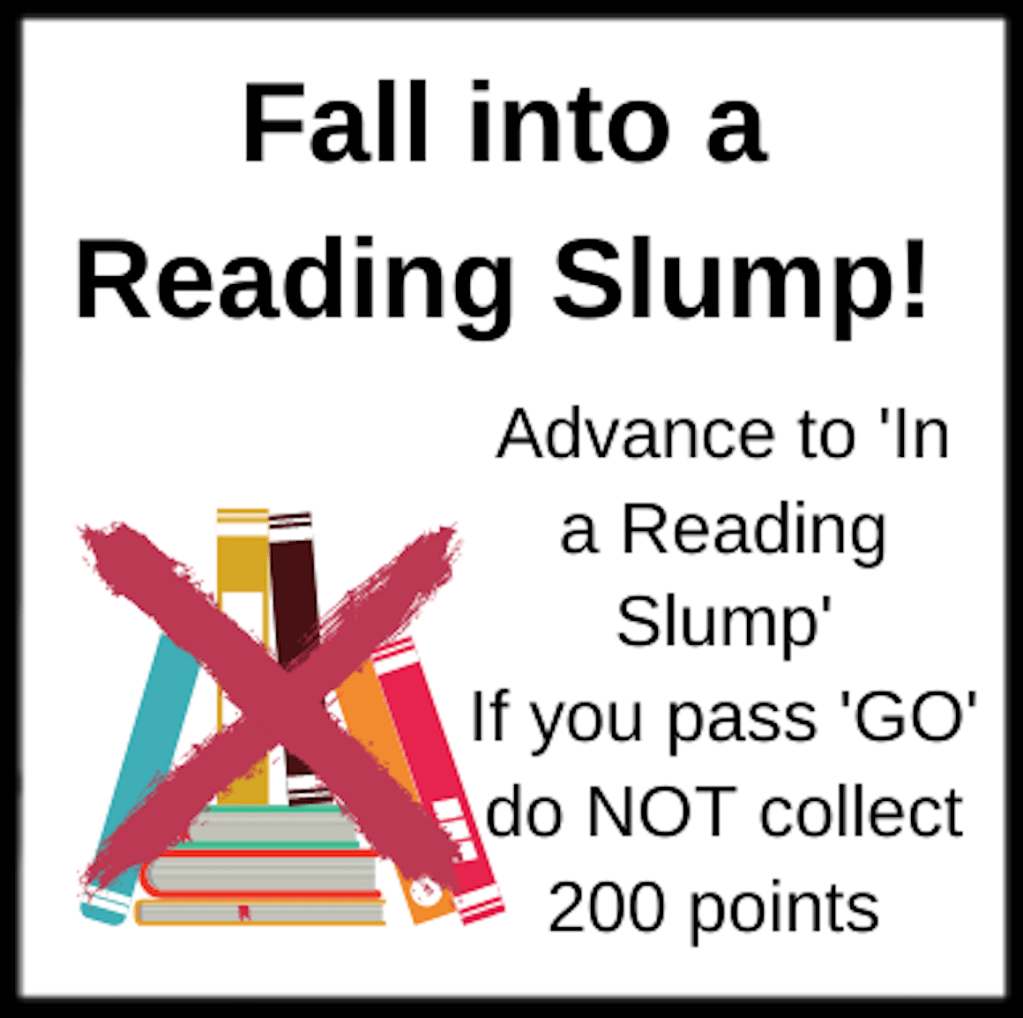 Lastly is the Fall into a Reading Slump space. If you land on this one you must head on over to the In a Reading Slump square and follow the above rules. If you pass βGOβ do NOT collect 200 points.