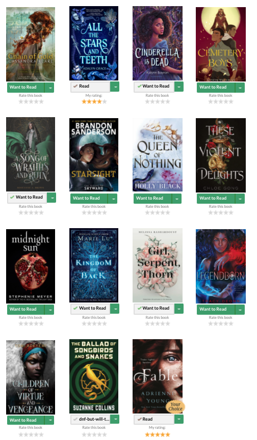 Firstly, there are books on there that haven’t even released yet or have just released (These Violent Delights for example), so how can those books compete with books that released in January for example. Of course the books released earlier in the year will get more votes as simply more people have had the chance to read it.