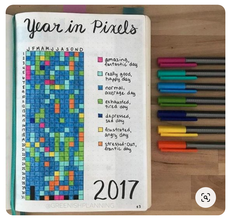 I’ve always loved the look of the Year in Pixels spreads but I’ve never been a huge fan of tracking my mood. I tried it a couple of times but always got lazy and didn’t finish it. So I decided to try this spread but bookish. So instead of tracking my mood I will track pages read each day. I also saw on a couple spreads that as well as colouring in each day people put a symbol or a dot or something on a day if they actually finish a book that day. So I want to do that as well.