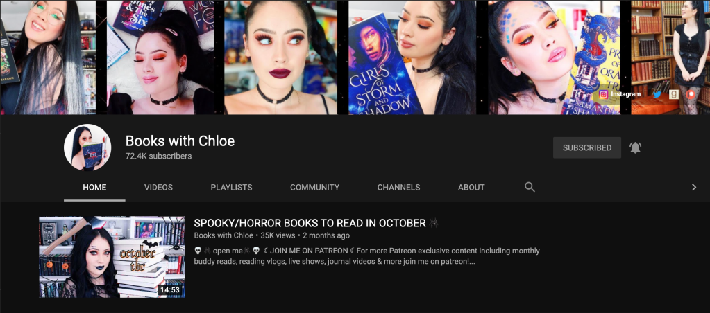 I go in and out of interest with this channel. I binge watch a heap of her videos in a week and then don’t watch anything for like a month! I still go back though… I recently watched an hour & a half video she posted reading horror books… I don’t even read adult horror & had heard of like 2 of them & didn’t even add any to my TBR BUT I still watched the video!