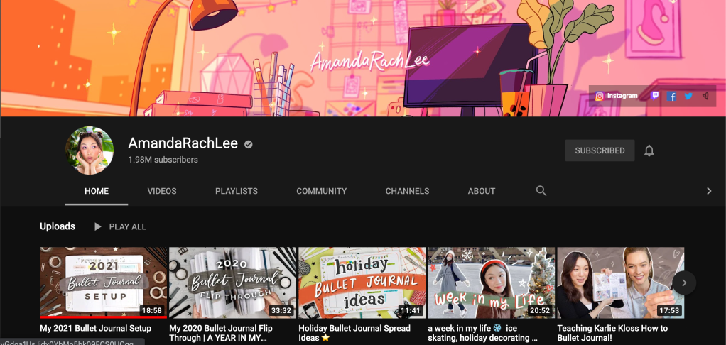 This is hands down my favourite Bullet Journalling channel. I watch others on occasion but this is the one I go to for inspiration. I love her spreads & the little doodles she does. I also just like her voice. Which is kinda of random but when you are watching a video that is mostly voice overs, that’s important!