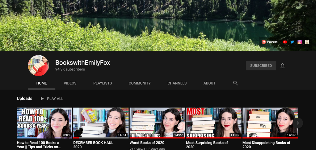 Merry Christmas everyone! Today I will be talking about YouTube channels I have loved this year. These aren’t necessarily ones I am still avidly watching as I tend to only focus on a couple channels at a time. So they change fairly regularly. I’ll talk about BookTube channels first & then talk about other random channels.