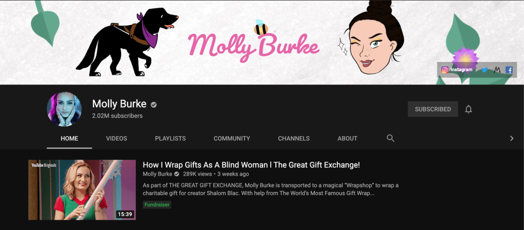 Another one I have been watching for a fair while! I really enjoy Molly’s personality & all her videos. I do love her normal (none blind girl) videos just as much as the videos that are more centred around her being blind & her educating people on blindness. I really enjoy that her videos are fun but also educational & I’ve learnt a lot about blindness & the blind community since I started watching her channel.