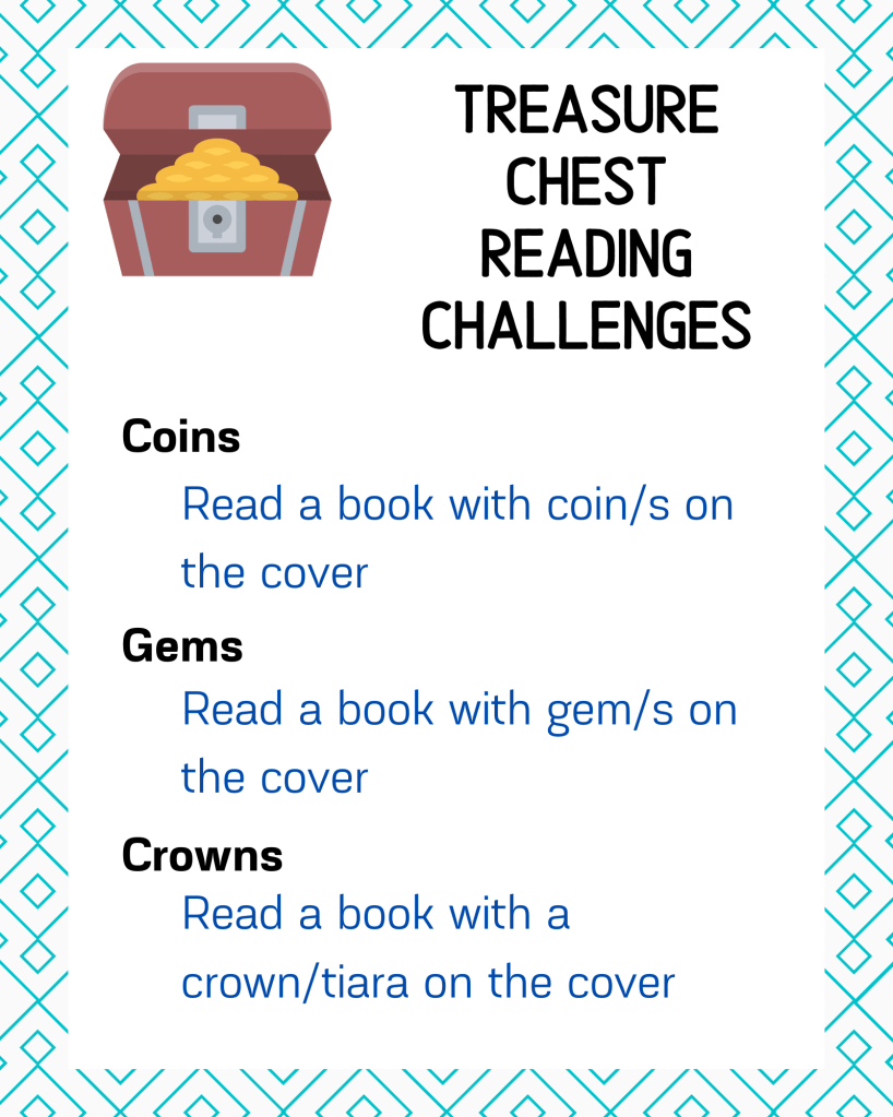These replace the Community Chest spaces on a normal Monopoly board. Check out the Treasure Chest Reading Challenge graphic & choose which type of treasure you want & complete the corresponding challenge