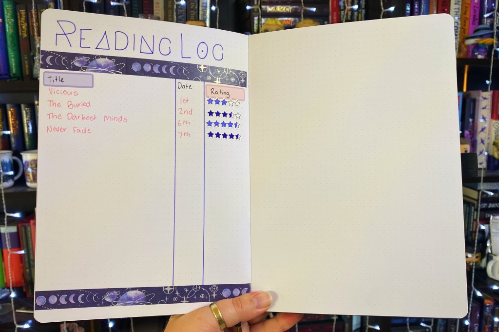 Next we have my Reading Log which I did the exact same as last month and I left the page next to it blank so I can have more space if I need it. If I don’t then I will fill it with something else!