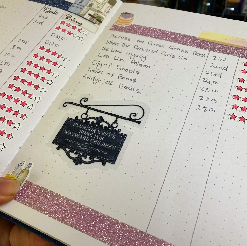 On this one I also added this super cute Wayward Children themed stickers as I reread the series in January! This sticker can be found on Redbubble & it’s by the Artist Fan-tasm! Oh and the star rating stickers are also from Mum & Me Handmade Designs!