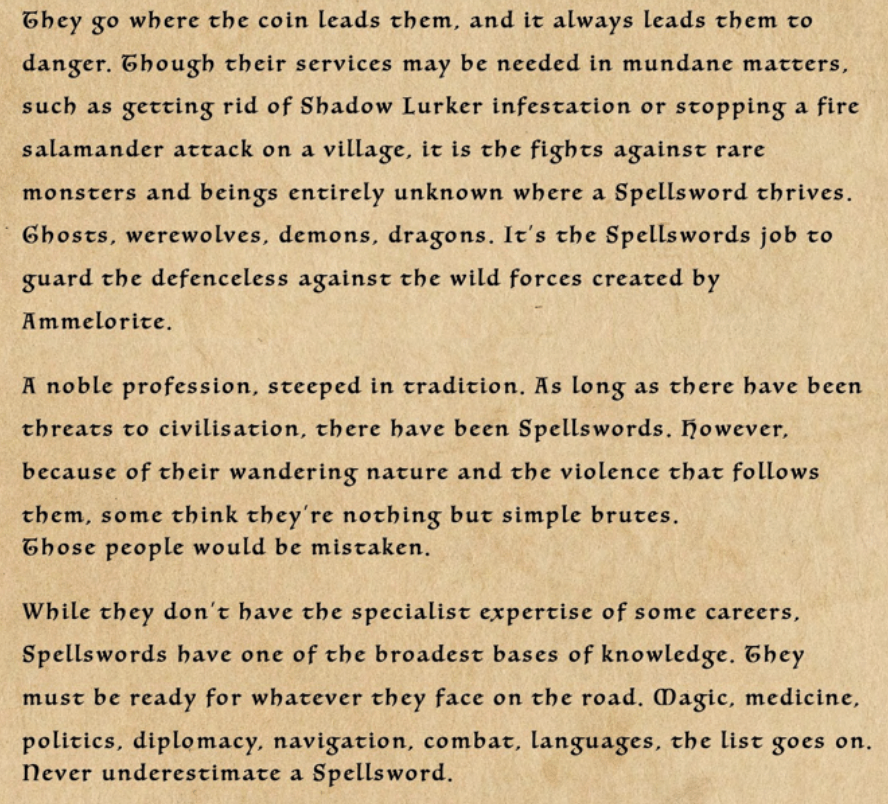 So yes, I chose Spellsword! I love the idea of being able to explore Aeldia and go on quests and discover new things! Right up my alley.