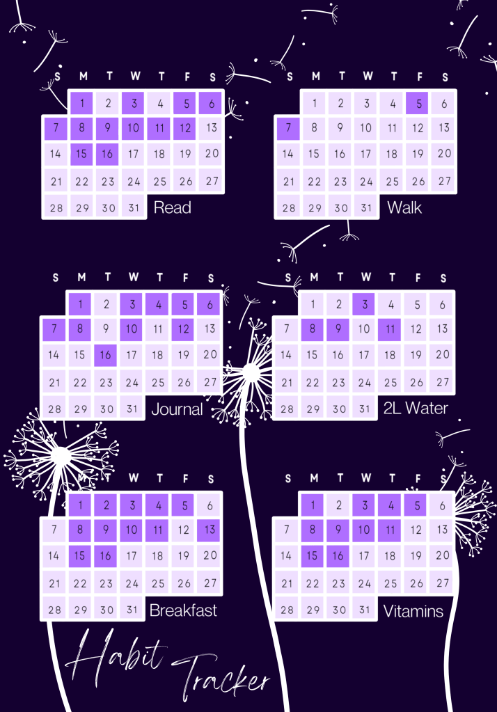 This inspiration is from CynthiaBujo. I thought this was so cute so I had to do my take on the dandelions. I went for a dark background and white dandelion with purple details and I love how it turned out!