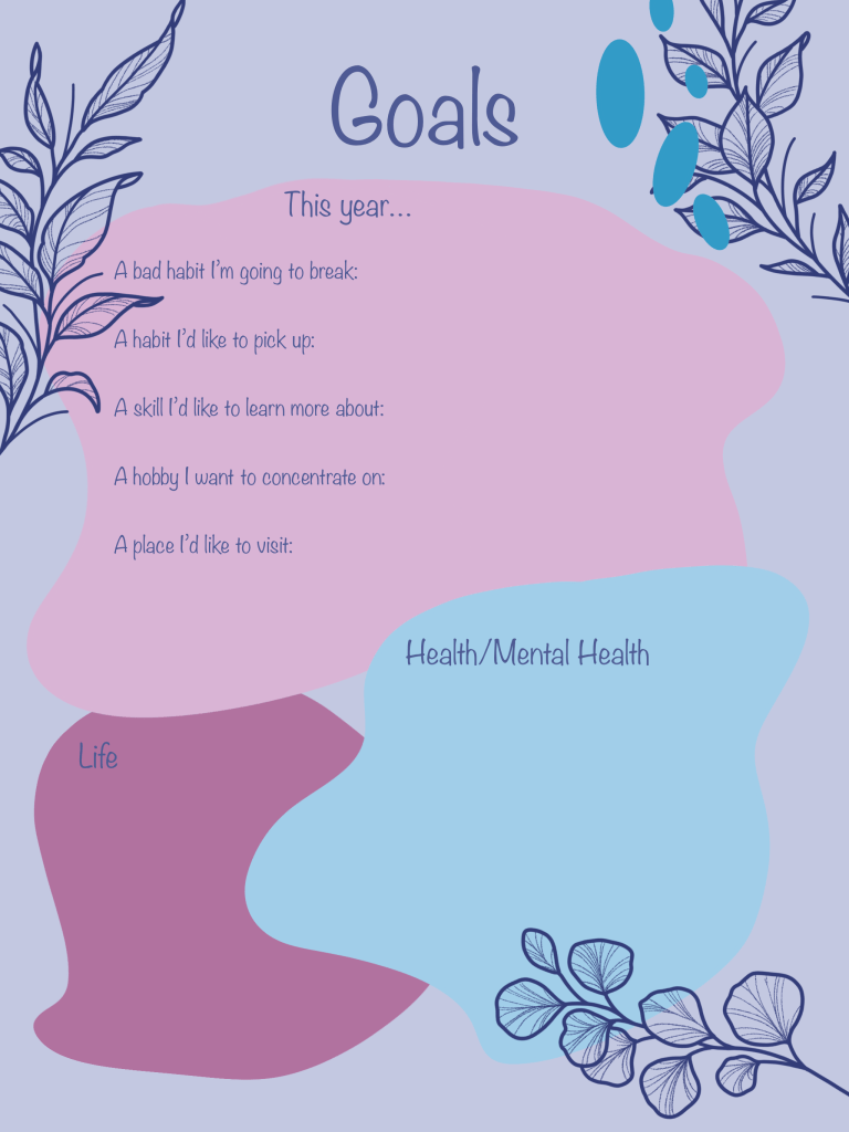 Next is the Goals page. Last year I only had headings for my goals but this year I decided to add some prompts as well which I found on a pinterest post.